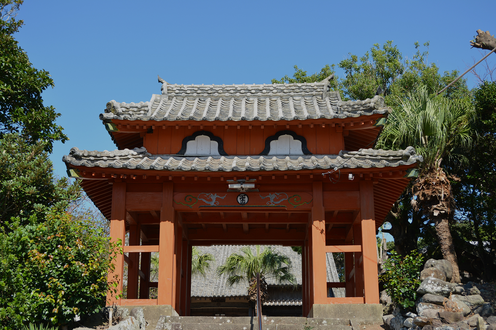 平戸から宇久島へ渡ってきた後、南へ勢力を伸ばし五島列島一円を平定したと言われている平家盛公の菩提寺として建立された寺。本堂の裏には、五島藩の始祖として家盛公以下七代を祀る霊廟がある。参道の石段の上に立つ特徴的な朱塗りの山門が堂々たる風格を放つ。また本堂には鯨組の寄進による閻魔大魔王像や十王像等が本堂に安置されている。